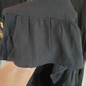 Nostalgia Black Rayon Embroidered Tassel Elastic Waist & Wrist Short Dress Sz L