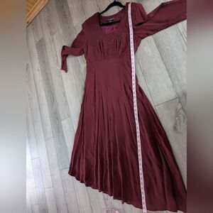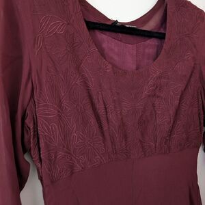 Nostalgia Burgundy Crimson Sheer Sleeve Empire Waist 90s Dress Size Small