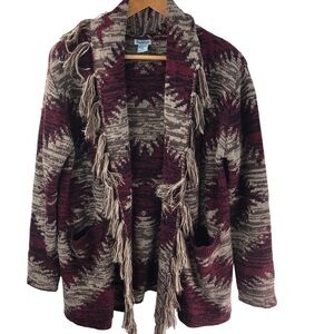 Nostalgia Fringe Cardigan Sz M Aztec Cabincore Long Boho Western Cabin Cozy