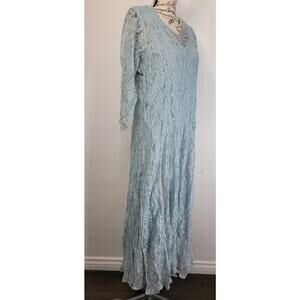 Nostalgia Maxi Dress Sz L Floral Lace Mesh Layered Blue Vintage 90's Cottagecore