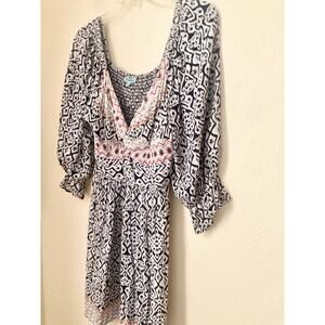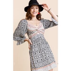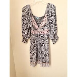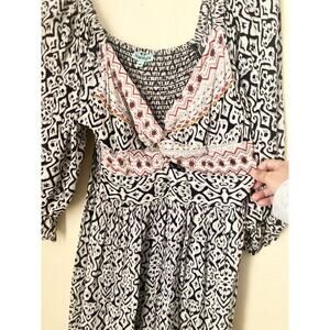 Nostalgia Women's Dress Size M Black IKAT Print Open Twist Front Smocked