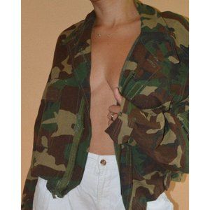 ✔️ Details: Nostalgic Camo Cropped Jacket featuring double front pockets and a full zip and velcro closure