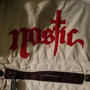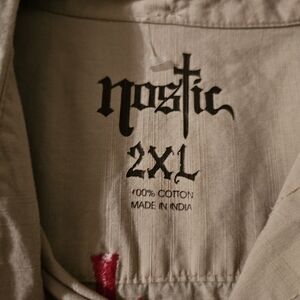 VINTAGE JIM JONES button dorn short sleeve shirt NWOT. The name Nostic means “knowledge of self and individuality,” The letter “t” in the brand logo is shaped like a cross or dagger and many of the designs incorporate religious imagery.