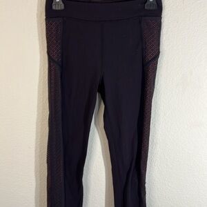 Lululemon Get Your Peek On Tight Athletic Leggings-Women’s Size 6. Style number W5AYBS. Color is Deep Phantom / Red Orange. Mid-rise, laser-cut design, pockets. Great preowned condition with light wear from normal use