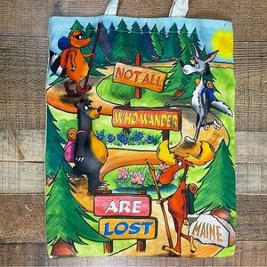 Not All Who Wander Colorful Cartoon Tote Bag Maine Animals Forest Nature