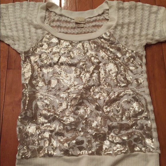 Daytrip short sleeve top cream w/ gold sequin detail, size small excellent condition, only worn a handful of times, purchased @ buckle! Perfect for spring!