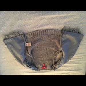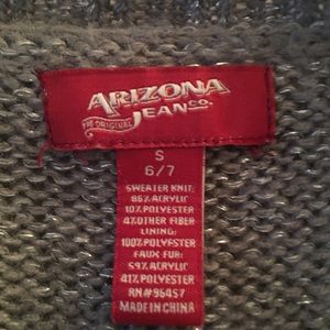 It is a gray starkly sweater vest that is from the company Arizona jeans.