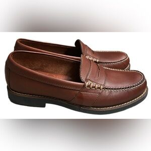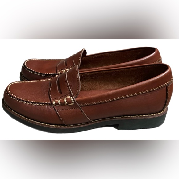 Classic Polo Sport Ralph Lauren leather penny loafers in rich brown. Timeless slip-on style with clean stitching and durable rubber soles for everyday wear. Shoes are new without box and show no signs of wear. Perfect for business casual, office, or smart everyday outfits.