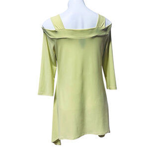 Clara Sun Woo Lime Green Cold Shoulder Tunic Top 3/4 Sleeve Asymmetrical Hem