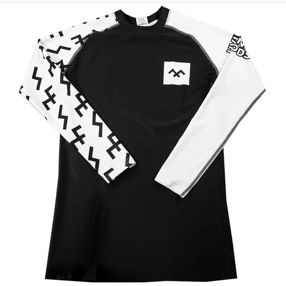 Not Dead Yet black and white Rash guard, size Large.