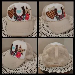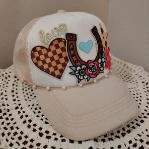 Patch Trucker Hat With Pearl Bead Hat Chain