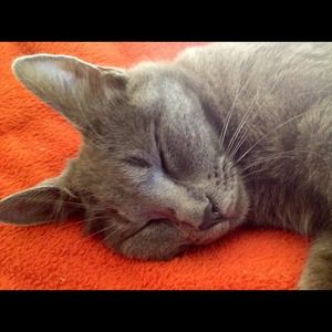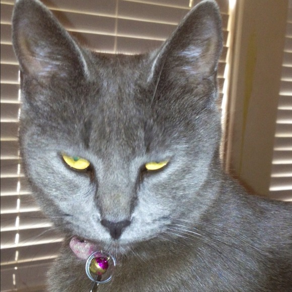This is 'Blue'. My Russian Blue. She is the Queen of our household and has learned to speak "Maa Maa" and "Out Side". It took alot of persistence, but is SO worth it to hear her say it.