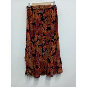 Earthbound Womens Maxi Skirt Size Medium Orange Paisley BOHO Festival Hi Low
