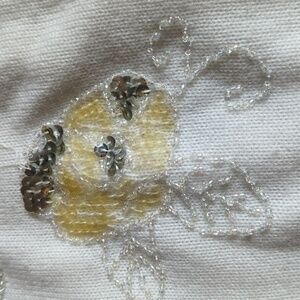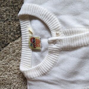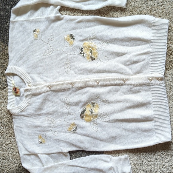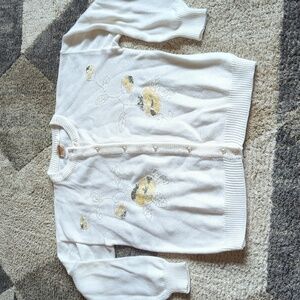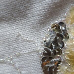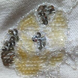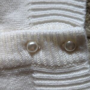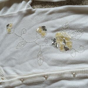 Vintage Knitted Button Down Cardigan White Ivory Sequin Beaded Medium