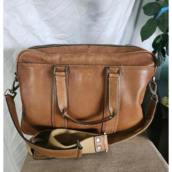 The Vintage Coach Legacy Laptop Documents Crossbody Bag is a classic brown leather shoulder/messenger bag from the renowned brand Coach. With a solid pattern and minor signs of wear visible in the pictures, this timeless piece is perfect for carrying your laptop and essential documents with its universal compatibility. The Coach Legacy model is known for its durable quality and stylish design, making it a versatile accessory for any vintage-loving fashionista.