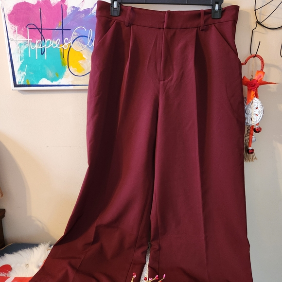Stylish burgundy wide-leg trousers. Perfect for any occasion.