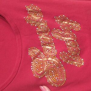 Y2K Tank Top Ribbed Victoria's Secret Santa Baby Embellished Bling XL Red