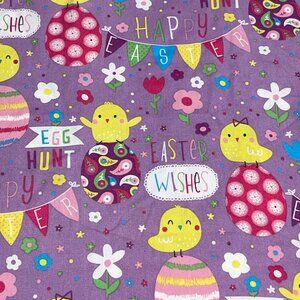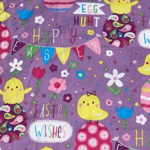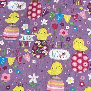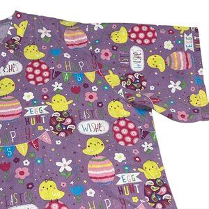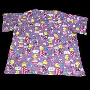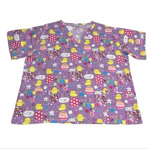UA Purple Easter Egg Bunny Rabbit Chick Floral Spring Scrub Top Plus Sz 2X