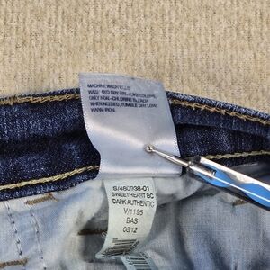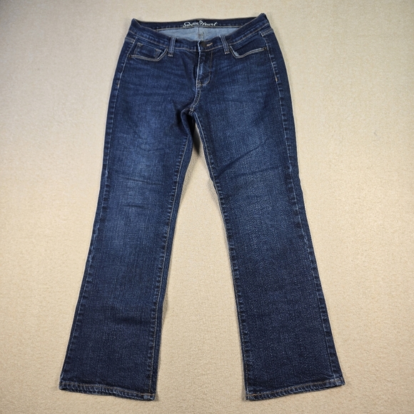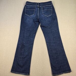 Classic Old Navy Sweetheart bootcut jeans in a dark authentic wash. These jeans feature a flattering mid-rise fit with stretch denim for comfort and shape retention. Great everyday jeans that pair well with boots, sneakers, or casual tops.