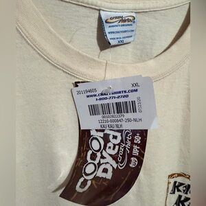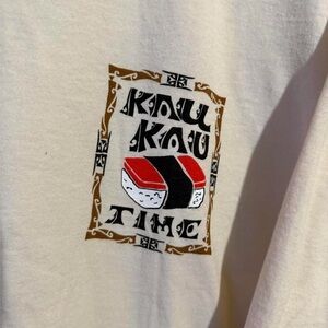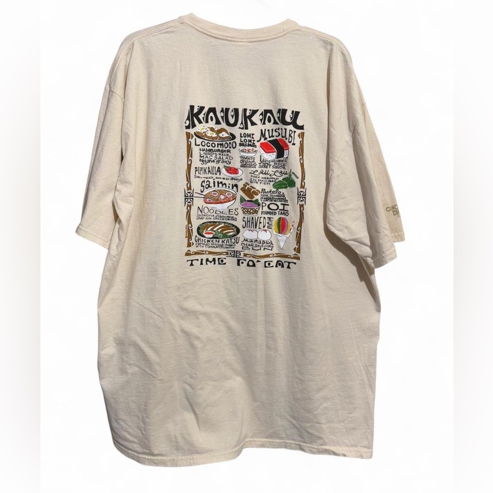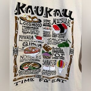 From the lunch wagon to the backyard potluck, kau kau means one thing: it’s time to eat. This tee is a full-on feast for the eyes, featuring iconic local dishes like loco moco, lomi lomi salmon, saimin, musubi, manapua, and more—all illustrated and labeled so there’s no mistaking what’s on the menu. Made using our exclusive specialty dyeing process that uses real coconut and featuring 100% combed ring-spun cotton, this t-shirt has 50+ SPF protection to keep you feeling cool, calm and protected all year long. We only use environmentally friendly, water-based.