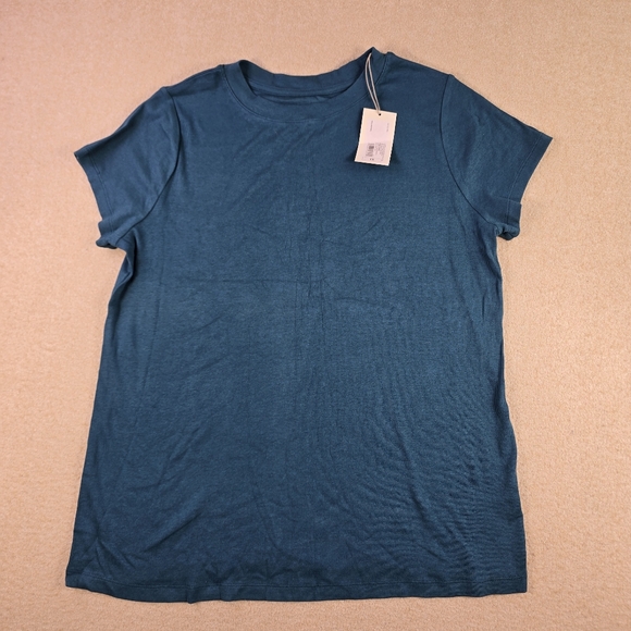Brand new with tags A New Day women’s short sleeve ribbed t-shirt in a versatile blue color. Soft, stretchy fabric blend makes it comfortable for everyday wear, layering, or casual outfits.