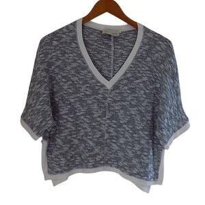 Anthropologie Saturday Sunday Theo Cropped Sweater XS Blue White Marble Preppy