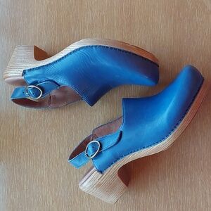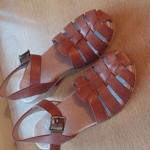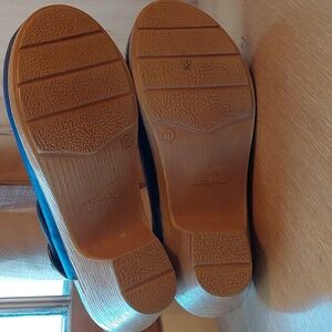 Bundle of 4 pair of Dansko shoes, all with various creases to leather, wear to soles, and general markings. Boots are size 39, clogs and fisherman sandals are 38