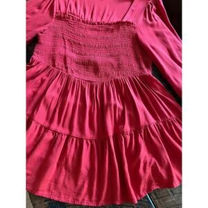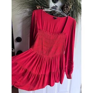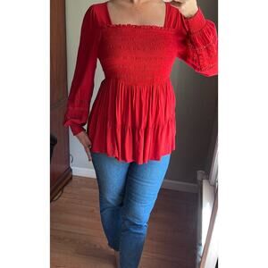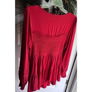Preowned and in EXCELLENT Condition Beautiful Red Torrid Long sleeve Babydoll Slub Lace Inset Smocked Square Neckline top 0. Absolutely Gorgeous!