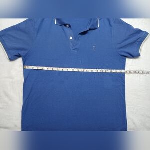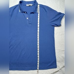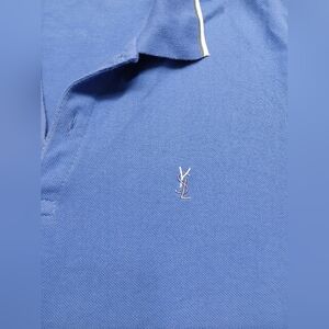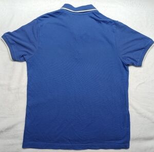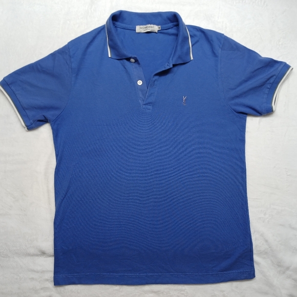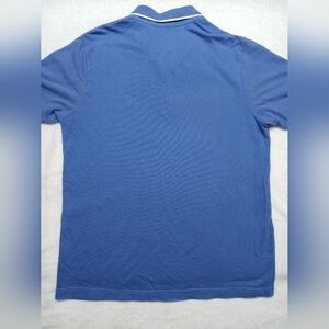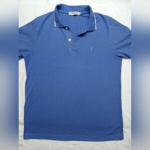 Elegant royal blue polo with white trim. Features a classic collar and button placket. Perfect for casual outings.