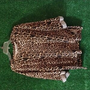 This Umgee blouse features a relaxed, boxy fit with elegant 3/4 length bell sleeves, perfect for a chic and comfortable look. The top showcases a classic leopard print in shades of brown and tan, adding a touch of bold style to any outfit. Its flowing design and light fabric make it an ideal choice for both casual and stylish occasions.