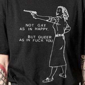 Not Gay As In Happy Shirt, But Queer As In Tee, Queer Punk Protest Shirt