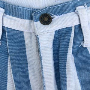 Not Guilty Cutoff Striped High Waist Fringe Jean Shorts Size S Made in USA Vintage