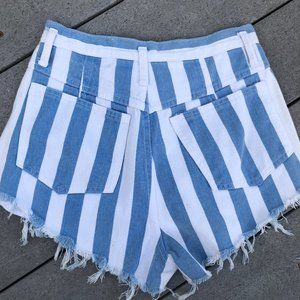 Not Guilty Cutoff Striped High Waist Fringe Jean Shorts Size S Made in USA