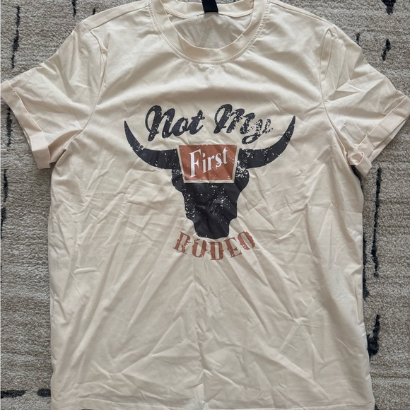Embrace a casual style with the 'Not My First Rodeo' cream t-shirt. Perfect for everyday wear.