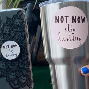 Super CUTE Weatherproof and Waterproof matte stickers! “Not Now I’m Listing” stickers for pop sockets, tumbler cups, Yetis, laptops, Hydroflask, etc.