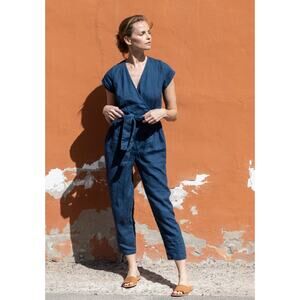 Not Perfect Linen Margaret Yellow Wrap Jumpsuit Size Small