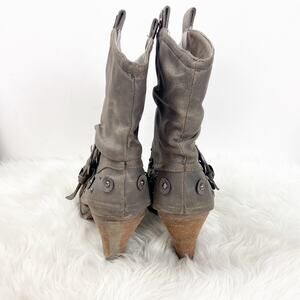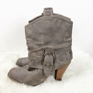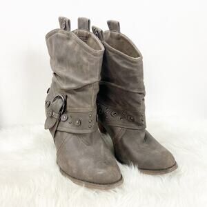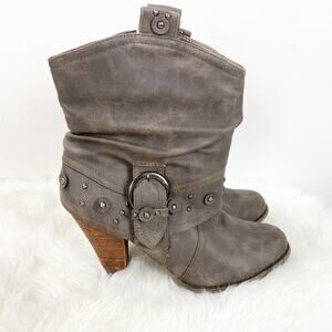 Not Rated 8.5 Womens Brown Faux Leather Buckle Stack Heeled Western Booties