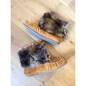 Faux fur lined faux suede studded house shoes by Not Rated -deadstock- size 7.5 M. Excellent condition.