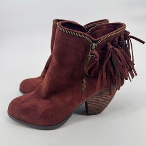 Not Rated Brown Fringe Faux Suede Booties Sz 9.5