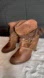 Stylish brown heeled boots with chain and rhinestone accents. Perfect for adding flair to any outfit. Sz: 7.5
