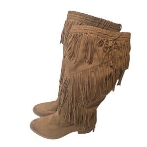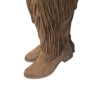 Not Rated Fringe Brown Suede Knee High Boots Festival Boho Western Size 10
