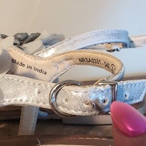Not Rated Silvery Thong Sandals with Floral Detailed Beaded Embellishments