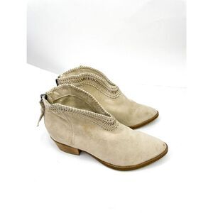 Not Rated Tan Boho V Cut Front Embroidered Suede Booties Size