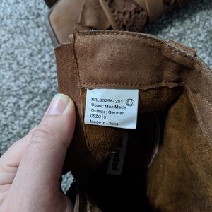 Brown ankle boot from Not Rates. Has a low heel (approximately 2") and features cute buckle details with lace overlay. Zipper side, runs 1/2 small. Excellent condition; only worn once.