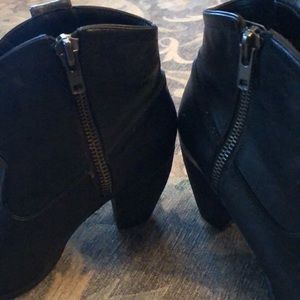 Not Rated black booties. Has zippers on the inside of each boot. Size 8