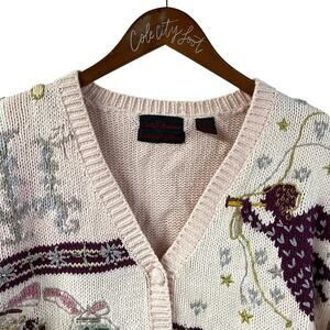 Not So Ugly Christmas Sweater Knitted Pastel Cardigan Santa Sleigh Horse Angel