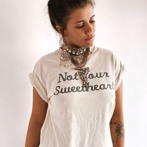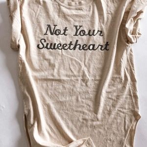 NWOT… Not Your Sweetheart by Pebby Forevee. Relaxed, oversized fit. Vintage inspired graphics. Flattering on any shape. Classic crew neck. Raw scoop bottom side slit hem