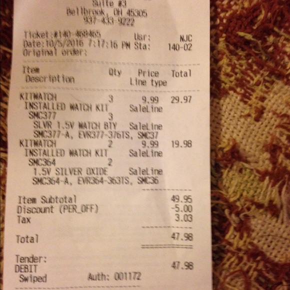 Receipt for batteries for watches I am selling on postmark plz make yourself a receipt is from batteries plus