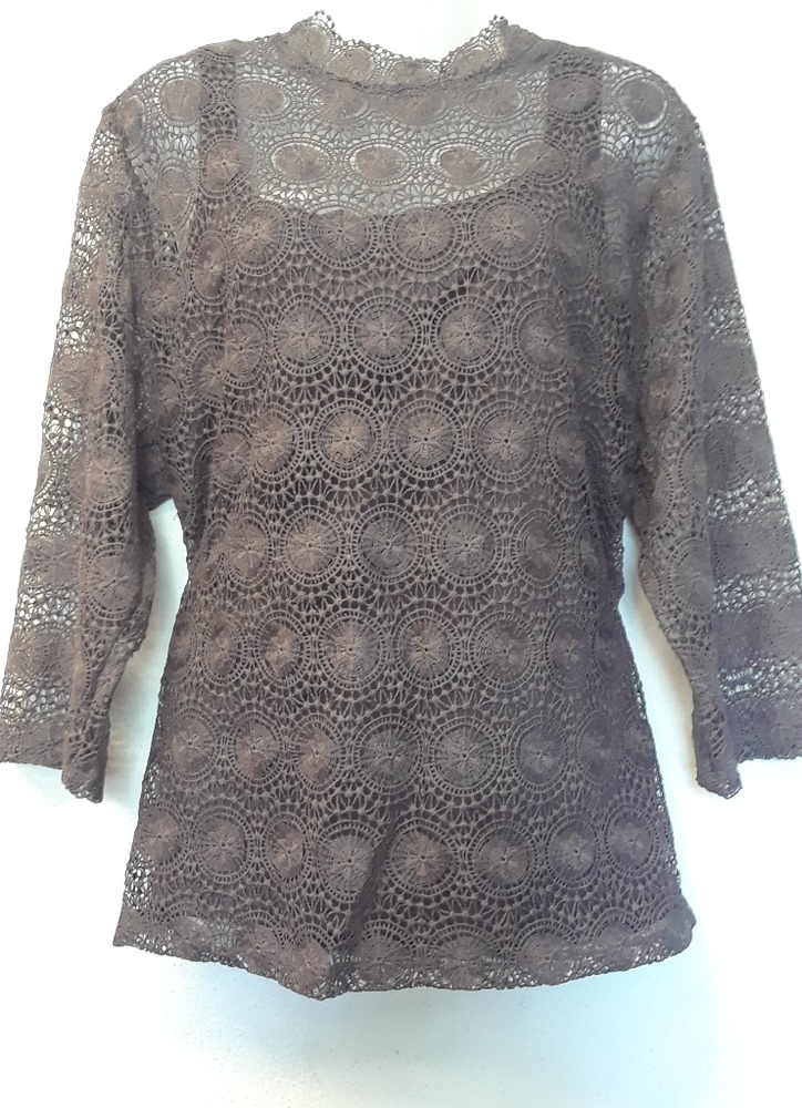 New Bedford Fair 3/4 Sleeves Lace women's Top with camisole, Beautiful when worn, floral lace, button closure on back.