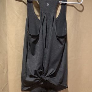 Super soft Lululemon tank no tags but it’s definitely a size 0-4. Has two slits on the back and it can be tied to have a thighter look from the back.